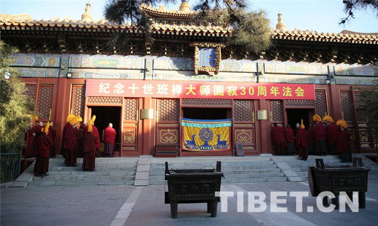 中國西藏網(wǎng)訊 1月28日,雍和宮舉行法會,紀念十世班禪大師圓寂30周年。圖為上午8時許,約80位教職人員、僧人誦禱經(jīng)文,有序進入法輪殿。