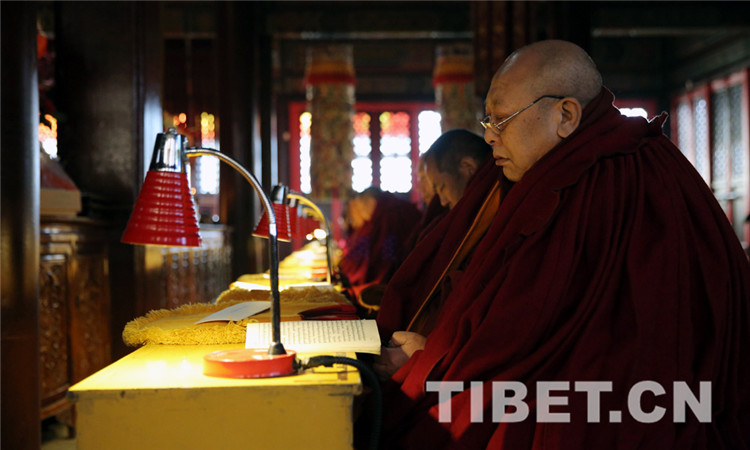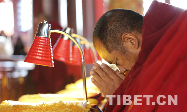 8時30分,法會開始,教職人員按既定儀軌,誦讀經(jīng)文,虔誠祈禱,法會現(xiàn)場肅穆莊重。(中國西藏網(wǎng) 記者/楊月云)