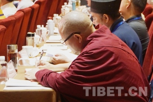 圖為達(dá)扎活佛聽(tīng)專家講座時(shí)做筆記。