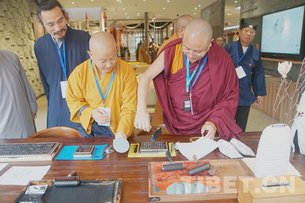 圖為達(dá)扎活佛體驗(yàn)印刷術(shù)。