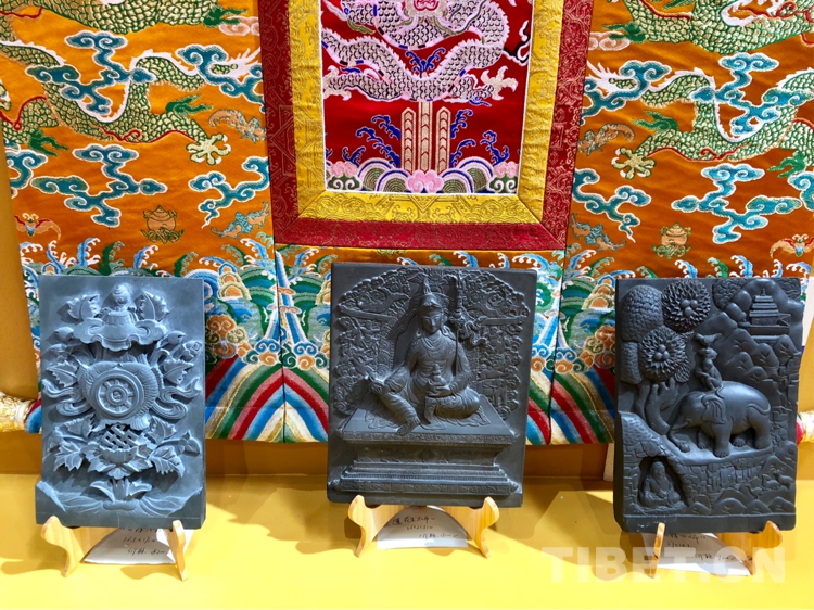 圖為展出的澤庫縣和日石刻藝術(shù) 攝影:格桑嘉措