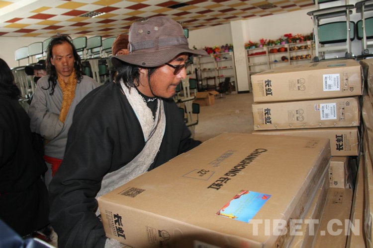 現(xiàn)場,6戶貧困戶代表上臺領(lǐng)取了電視機。嶄新的長虹液晶電視捧在手上,農(nóng)牧民群眾個個滿臉掛著燦爛的笑容?!艾F(xiàn)在路也好了、電也通了,又給我們發(fā)電視機,我們從心底感謝黨中央??!”濯桑鄉(xiāng)受贈群眾代表多吉用藏語感激地說。
