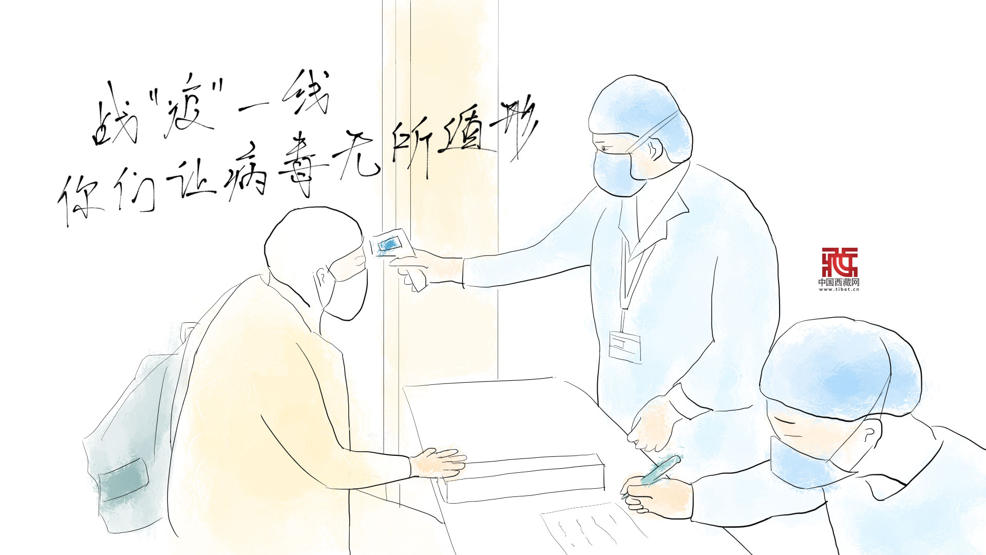 我們用畫筆記錄下感人的瞬間:戰(zhàn)“疫”前,戰(zhàn)“疫”者們無聲的誓言;確診時(shí),病人的憂慮;急救中,關(guān)心和愛護(hù)、責(zé)任與擔(dān)當(dāng);出院后,感動(dòng)和溫暖……讓我們向所有奮戰(zhàn)在抗疫前線的醫(yī)務(wù)工作者表示衷心的感謝,用繪畫致敬抗疫英雄!(中國西藏網(wǎng) 文/王智霖 圖/蘇洋)