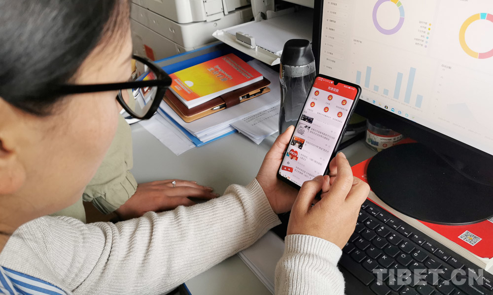 圖為基層工作人員正在使用“紅色北斗”智慧黨建系統(tǒng) 圖片由北京援藏指揮部提供