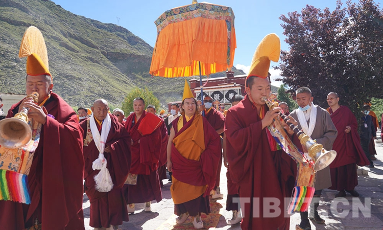 圖為十一世班禪在僧眾引領下走進桑普寺 攝影:王淑