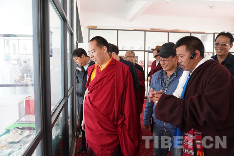 在調(diào)研中,十一世班禪關(guān)心的問題得到了很好的解答,他頻頻點(diǎn)頭表示贊許。從娘亞牦牛原種場了解到養(yǎng)殖基地的建成運(yùn)營情況后,十一世班禪立刻趕往公司加工車間和銷售店,觀摩酥油、奶制品制作過程,了解銷售、帶動牧民增收情況。十一世班禪希望公司能夠?qū)⒓卫璧淖匀粴夂?、土地條件等實(shí)際情況與科學(xué)實(shí)驗(yàn)相結(jié)合,樹立好家鄉(xiāng)民族特色品牌,為草原生態(tài)保護(hù)和畜牧業(yè)發(fā)展探索經(jīng)驗(yàn)。