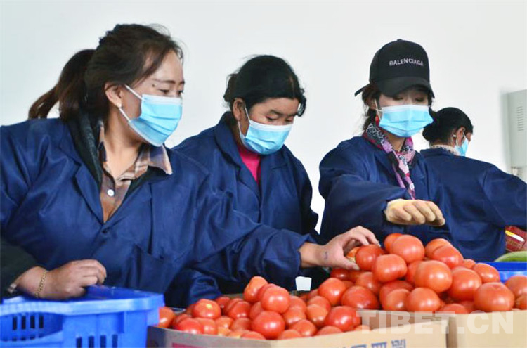 圖為員工在分揀番茄