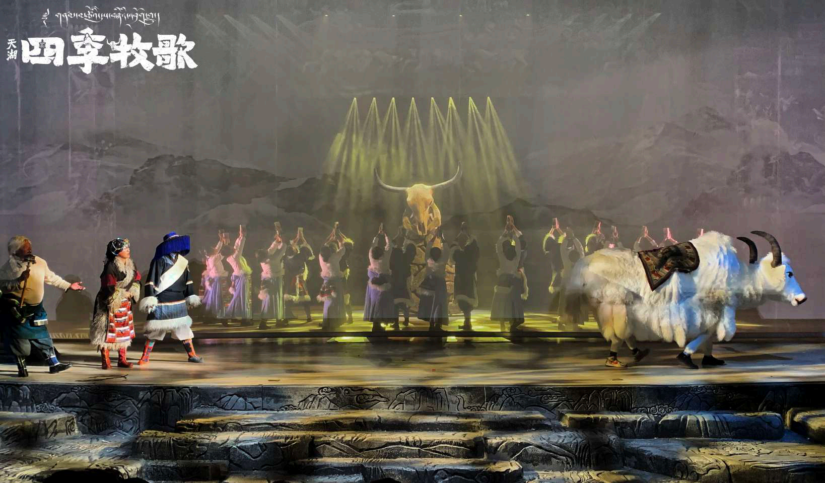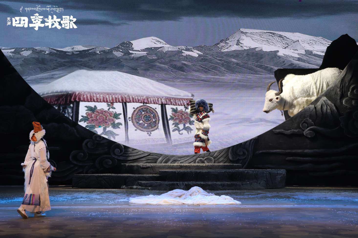 據(jù)悉,《天湖·四季牧歌》是由《序·天語(yǔ)》《春·融冰·相遇》《夏·富饒·相識(shí)》《秋·豐收·相愛(ài)》《冬·尋找·相思》《尾聲·天湖牧歌》六部分組成的多幕劇。