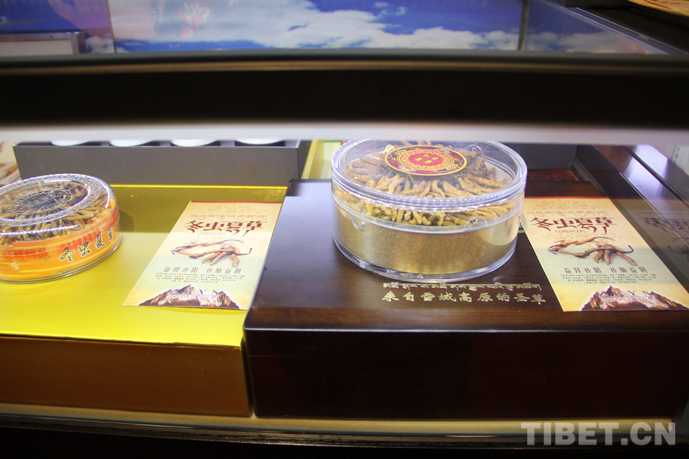 圖為玉樹州民族特色商品展中的冬蟲夏草