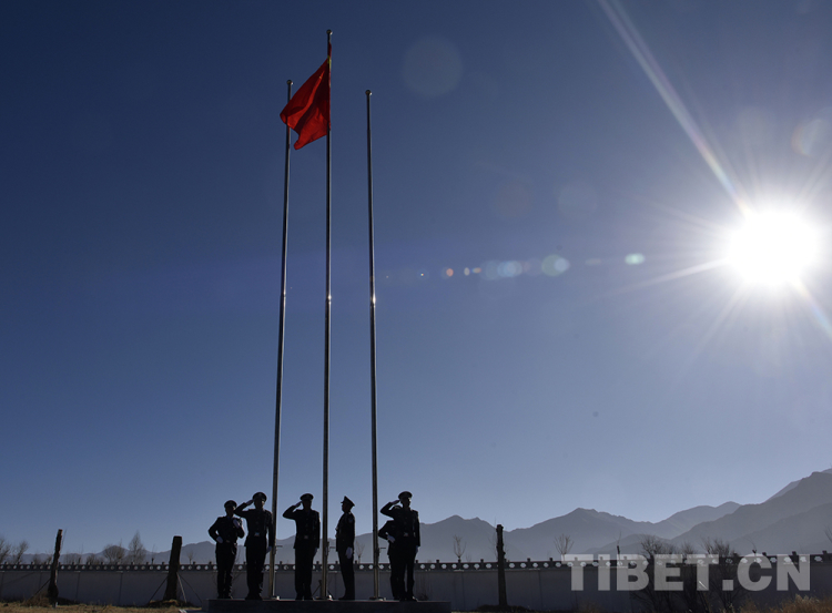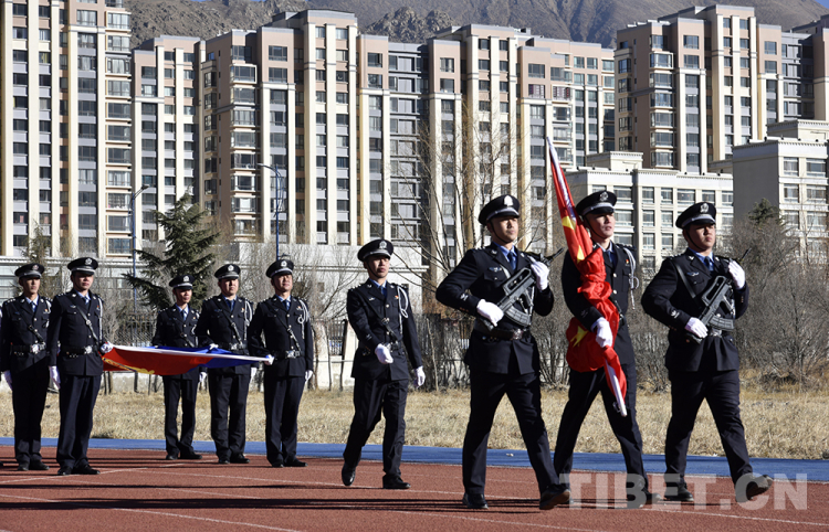 中國西藏網(wǎng)訊 伴隨著洪亮的國歌聲,一面五星紅旗冉冉升起。1月1日上午,西藏自治區(qū)拉薩市公安局城關公安分局納金派出所及轄區(qū)內(nèi)百余名群眾著盛裝齊聚一堂,舉行升國旗、慶元旦、喜迎“中國人民警察節(jié)”活動。