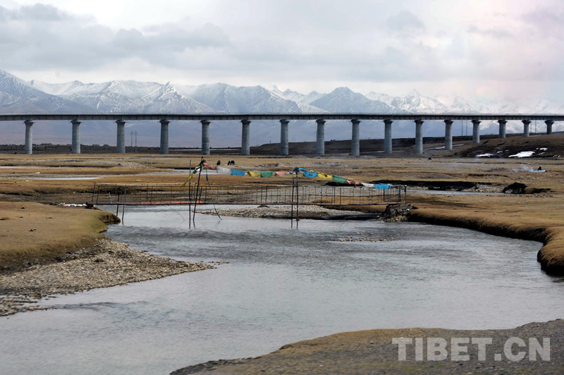 圖為藏北高原上,一座以橋代路的“天路”特大高架橋(唐召明2008年4月4日攝)
