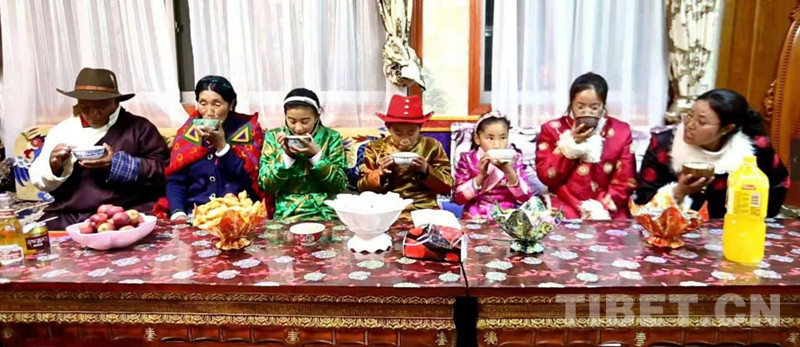 2月10日晚,藏歷新年“古突”夜,在西藏自治區(qū)阿里地區(qū)獅群河鎮(zhèn)康樂新居易地扶貧搬遷點(diǎn)居住的索南旺久一家,換上了節(jié)日的盛裝,準(zhǔn)備好傳統(tǒng)美食“古突”,在自家寬敞明亮的房子內(nèi),共慶傳統(tǒng)佳節(jié)的到來。索南旺久說,因?yàn)橛悬h的好政策,他們一家搬到了寬敞明亮的大房子,現(xiàn)在日子越過越紅火,年味也就更濃了。