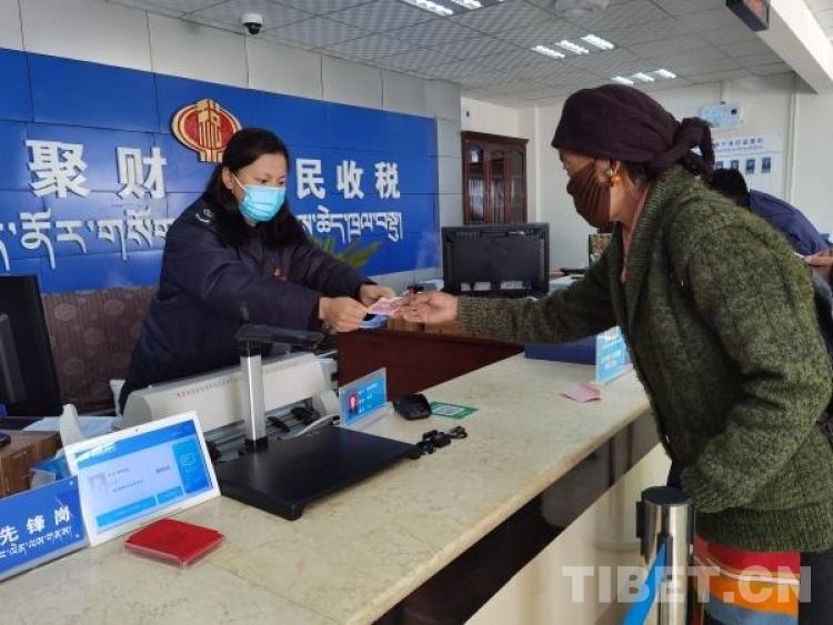 圖為國家稅務(wù)總局薩迦縣稅務(wù)局辦稅服務(wù)廳里稅務(wù)人員在為群眾辦理業(yè)務(wù)