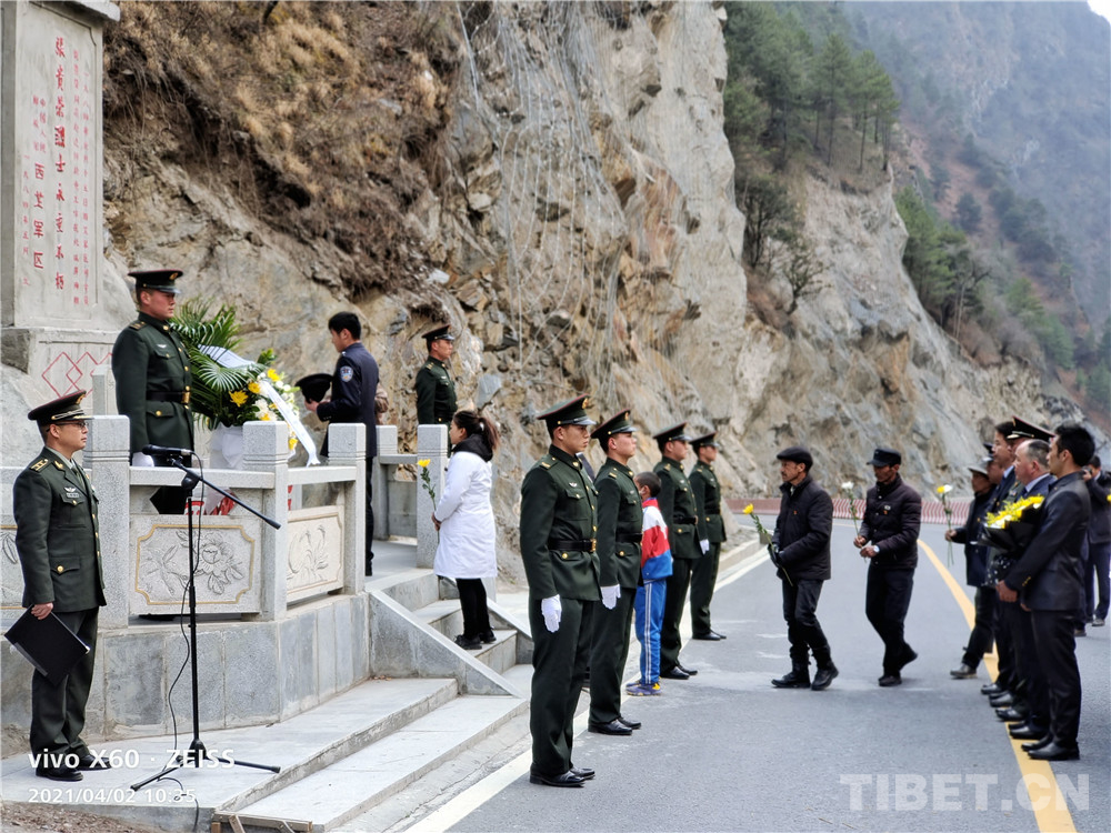 圖為隆子縣組織黨員干部在張貴榮將軍墓前獻單束哀菊以表哀思。隆子縣供圖