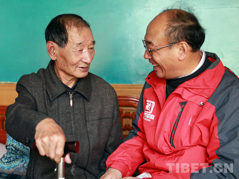 我和公覺扎朗已有30多年未謀面了。耄耋之年的公覺扎朗記憶力不好,腿腳也不靈活。他的老伴央金此時去尼瑪縣看望當(dāng)干部的女兒玉珍一家,只有保姆在家照顧他,于是我們手拉著手,斷斷續(xù)續(xù)地回憶起當(dāng)年的許多往事……