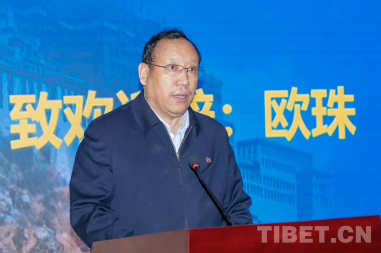 圖為西藏民族大學(xué)黨委書記歐珠致歡迎辭