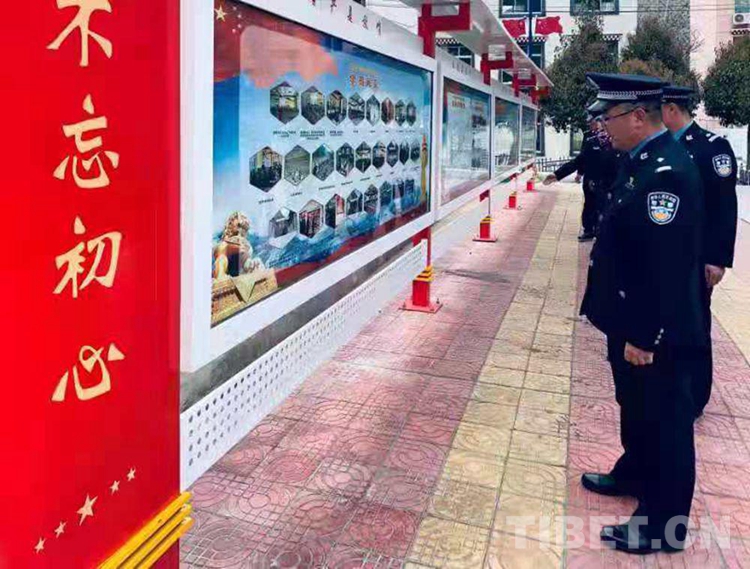 圖為朗縣邊境管理大隊民警參觀“不忘初心”展區(qū) 攝影:柳春偉