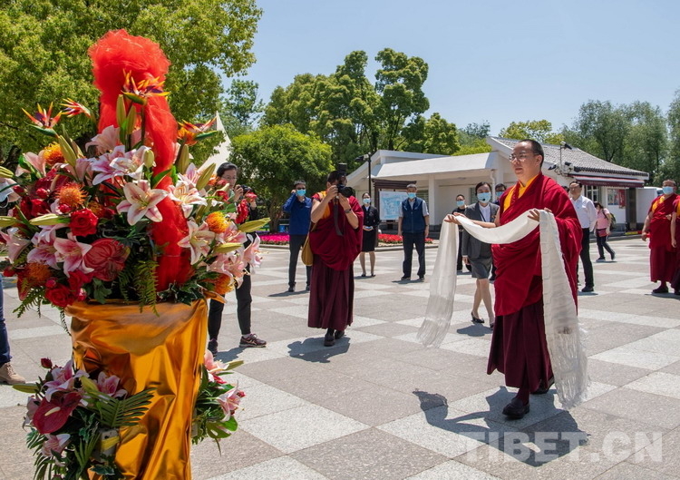 10日上午,班禪專程來到位于上海市青浦區(qū)練塘鎮(zhèn)的陳云紀(jì)念館,認(rèn)真聽取了陳云同志有關(guān)事跡,并向陳云銅像敬獻哈達,追思陳云同志愛國憂民、為共產(chǎn)主義事業(yè)鞠躬盡瘁的偉大一生……