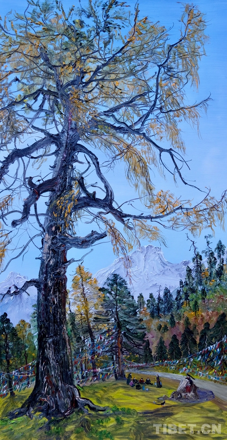 “展覽的油畫創(chuàng)作大多是在寫生現(xiàn)場完成的,她的藝術(shù)風(fēng)格也清新生動。她以自己的寫生作品,令觀眾共享融入自然的至純大美,這是一種平易近人的審美方式?!眹乙患壝佬g(shù)師余有心評價說,子白特別善于畫樹,她的一幅幅佳作就是這些千年古樹的肖像,借審美而參悟自然生態(tài)的奧妙,帶觀眾領(lǐng)會高原生態(tài)文明之真諦。