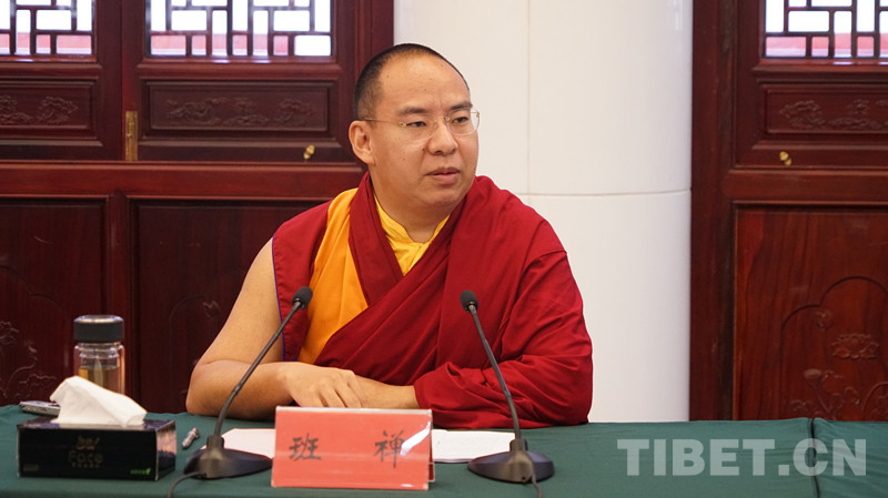 圖為班禪在座談會(huì)上發(fā)言