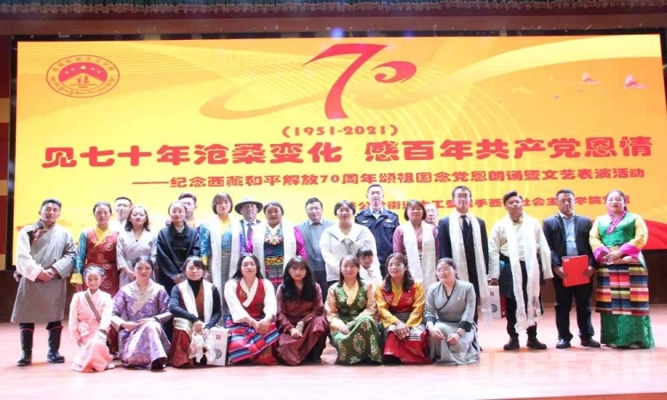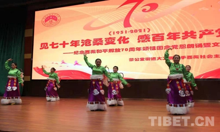 5月23日是西藏和平解放70 周年紀(jì)念日。23日上午,由西藏自治區(qū)拉薩市蔡公堂街道和西藏社會(huì)主義學(xué)院共同舉辦的紀(jì)念西藏和平解放70周年頌祖國(guó)、念黨恩朗誦暨文藝表演活動(dòng)舉行?,F(xiàn)場(chǎng)鮮花嬌艷,燈光炫目,旋律悠揚(yáng),歌聲嘹亮。