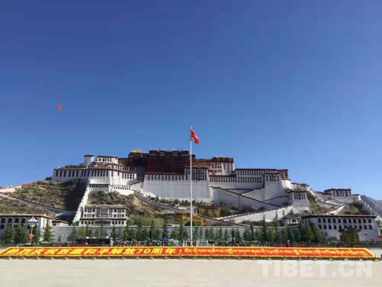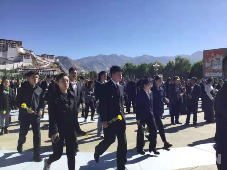 出席當天儀式的干部職工代表,解放軍和武警部隊官兵代表,學校師生、離退休干部職工、僧尼和群眾代表1000余人。10時整,在軍樂隊伴奏下,西藏黨政軍負責人同西藏各界代表一起高唱中華人民共和國國歌,國歌聲在布達拉宮廣場回蕩。