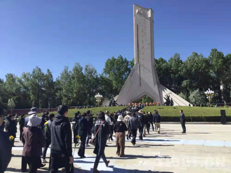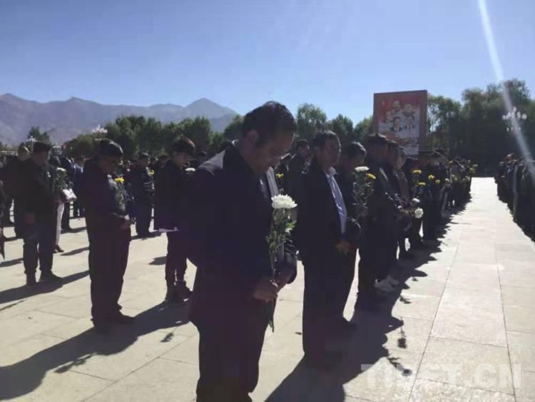 圖為向為西藏和平解放和社會主義革命與建設事業(yè)英勇犧牲的烈士們默哀 攝影:拉姆