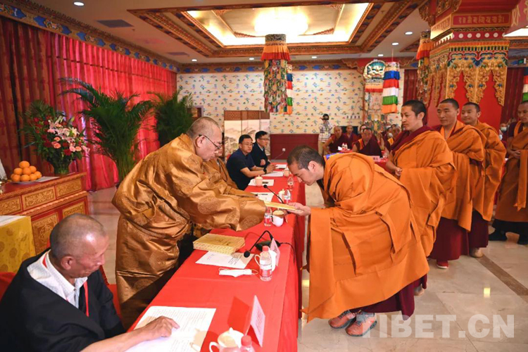 圖為中國(guó)佛教協(xié)會(huì)副會(huì)長(zhǎng)、藏傳佛教學(xué)銜工作指導(dǎo)委員會(huì)主任、中國(guó)藏語(yǔ)系高級(jí)佛學(xué)院院長(zhǎng)嘉木樣活佛向?qū)W員頒發(fā)學(xué)銜證書(shū)