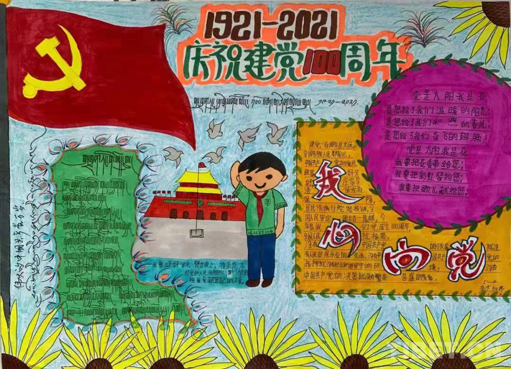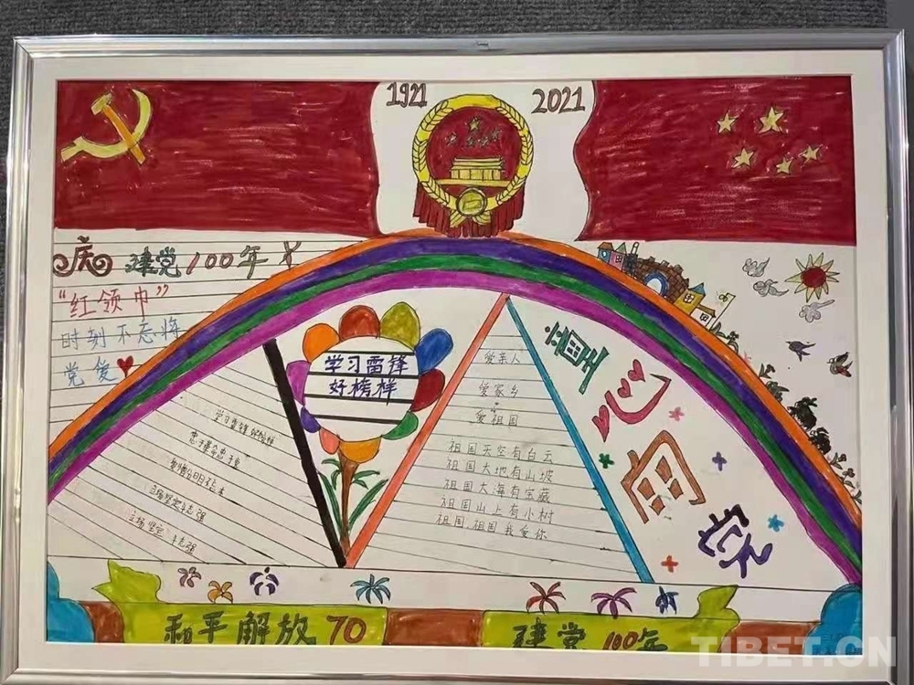 此次展覽是在慶祝中國共產(chǎn)黨成立100周年、西藏和平解放70周年之際,舉辦的一次展示西藏少年精神面貌的少兒手抄報專題展。展覽從今年三月份開始策劃,共展出240幅堆龍德慶區(qū)小學(xué)生手抄報。