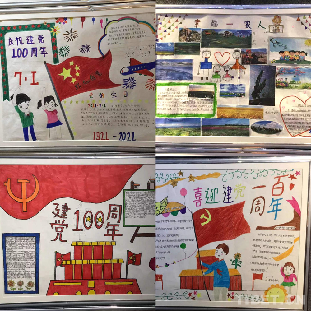 圖為“童心向黨”少兒手抄報專題展展覽作品
