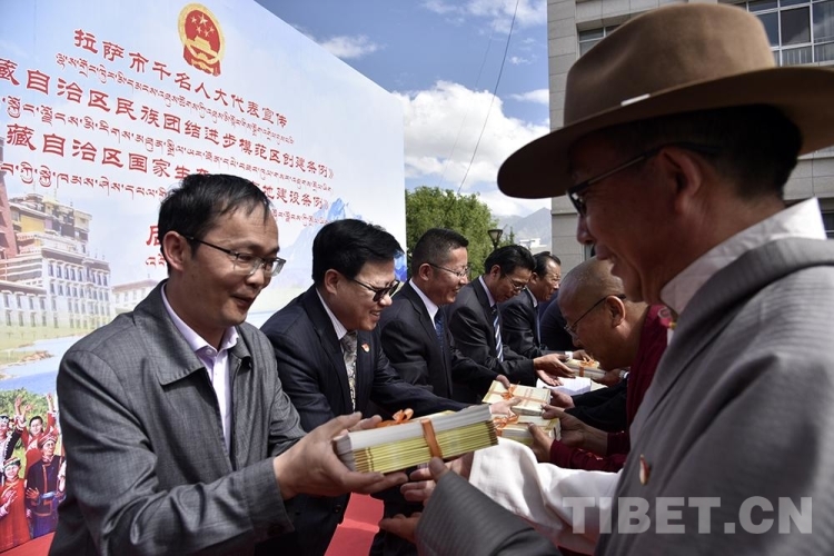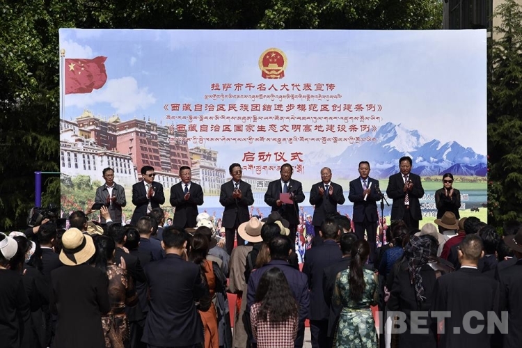 中國西藏網(wǎng)訊 6月9日上午,拉薩市千名人大代表(包括自治區(qū)、市、縣、鄉(xiāng)四級人大代表)宣傳《西藏自治區(qū)民族團(tuán)結(jié)進(jìn)步模范區(qū)創(chuàng)建條例》和《西藏自治區(qū)國家生態(tài)文明高地建設(shè)條例》(以下簡稱兩個《條例》)工作正式啟動。
