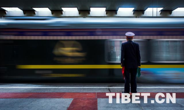 圖為一列火車(chē)駛出拉薩站 攝影:趙耀