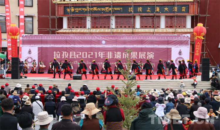 此次活動主要分為展演和展示兩大部分。非物質(zhì)文化遺產(chǎn)展演有來自拉孜縣非遺歌舞(說唱)拉孜折嘎、吉如諧欽、柳寧諧、芒普鄉(xiāng)孔絲、拉孜堆諧等11個具有代表性的拉孜非物質(zhì)文化遺產(chǎn)展演,給現(xiàn)場觀眾呈現(xiàn)了一場文化盛宴。多姿多彩的節(jié)目不時引起臺下陣陣掌聲,讓觀眾們感受到了非物質(zhì)文化遺產(chǎn)帶來的深厚魅力。