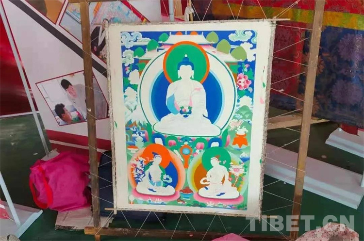 圖為拉孜縣扎西崗鄉(xiāng)旁達村村民繪制的唐卡
