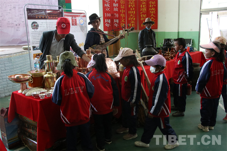 圖為拉孜縣完小學生參觀傳統(tǒng)手工藝產(chǎn)品