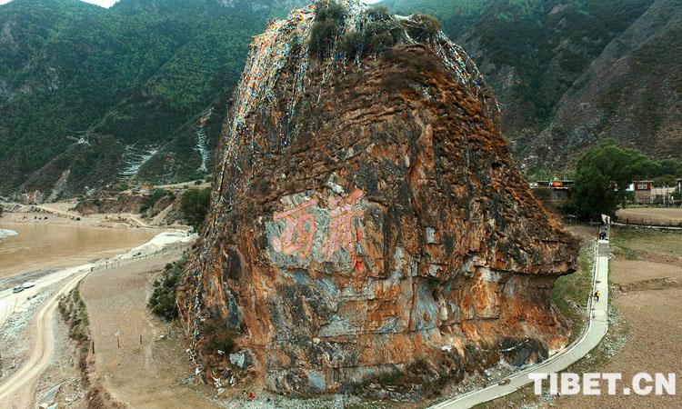 圖為江達(dá)縣崗?fù)墟?zhèn)崗?fù)写澹塑姂?zhàn)士刻下的“西藏”兩個(gè)大字 攝影:陳衛(wèi)國(guó)