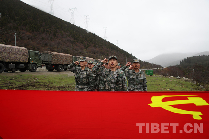 中國西藏網訊 近日,西藏軍區(qū)某運輸旅執(zhí)行川藏線方向的運輸任務車隊,到達迫龍?zhí)祀U時,開展了“重溫入黨誓詞、爭當保障尖兵”活動?!拔抑驹讣尤胫袊伯a黨,我宣誓……”鏗鏘有力的誓言在崇山峻嶺中回蕩。