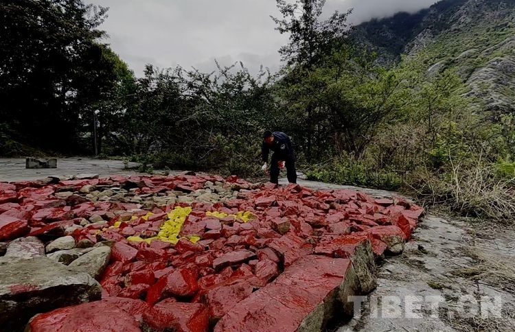 中國(guó)西藏網(wǎng)訊 “這些石頭都是地震過(guò)后山體滑坡遺留下來(lái)的,我們現(xiàn)在把它搬過(guò)來(lái)砌成黨旗,也算是充分發(fā)揮它的作用了?!痹撜救朦h積極分子徐新新一邊搬著石頭一邊對(duì)記者說(shuō)道。
