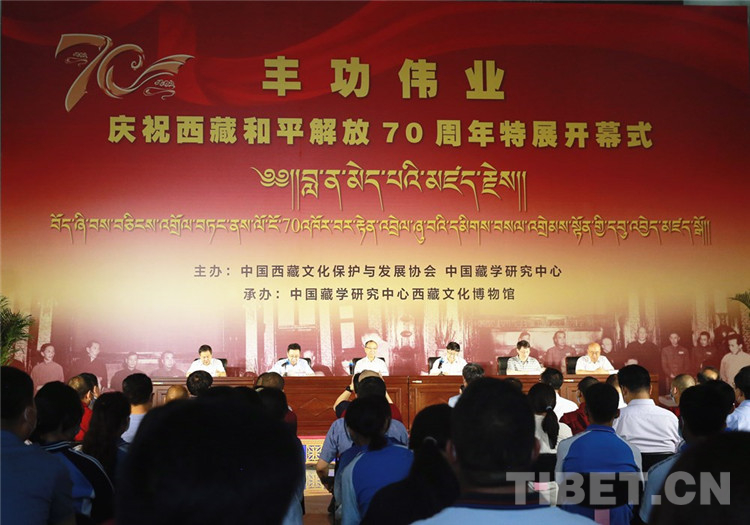 中國(guó)西藏網(wǎng)訊 2021年6月29日,由中國(guó)西藏文化保護(hù)與發(fā)展協(xié)會(huì)、中國(guó)藏學(xué)研究中心主辦的“豐功偉業(yè)——慶祝西藏和平解放70周年特展”在中國(guó)藏學(xué)研究中心西藏文化博物館開(kāi)幕。中國(guó)西藏文化保護(hù)與發(fā)展協(xié)會(huì)副會(huì)長(zhǎng)斯塔、中國(guó)藏學(xué)研究中心黨組書(shū)記陳宗榮出席開(kāi)幕式并致辭。中國(guó)藏學(xué)研究中心總干事鄭堆主持開(kāi)幕式。中央宣傳部、中央統(tǒng)戰(zhàn)部相關(guān)同志和有關(guān)專(zhuān)家學(xué)者等百余人參加開(kāi)幕式。