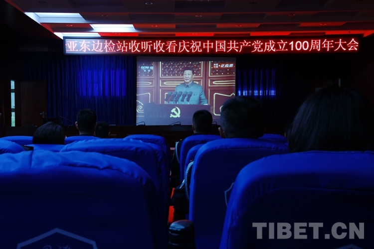 圖為西藏亞東出入境邊防檢查站組織民警觀看慶祝中國(guó)共產(chǎn)黨成立100周年大會(huì)