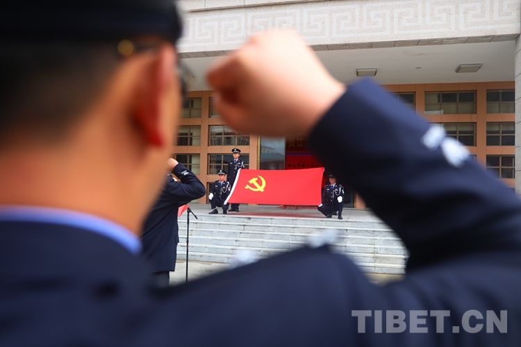 圖為林芝邊境管理支隊民警重溫入黨誓詞 攝影:姜凱峰
