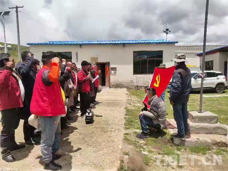 圖為那曲市色尼區(qū)油恰鄉(xiāng)干部群眾重溫入黨誓詞 攝影:馬建國(guó)