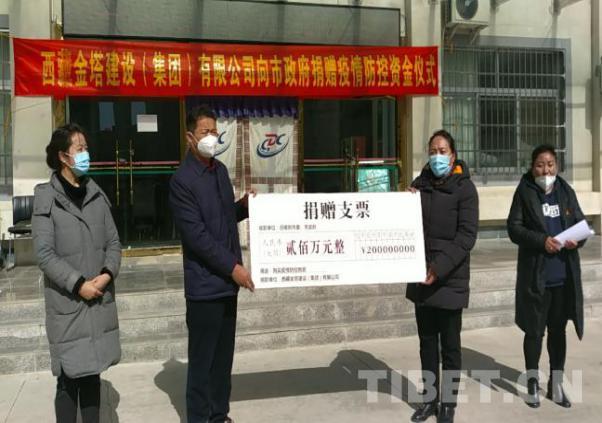 圖為西藏金塔集團(tuán)向日喀則市政府捐贈疫情防控資金