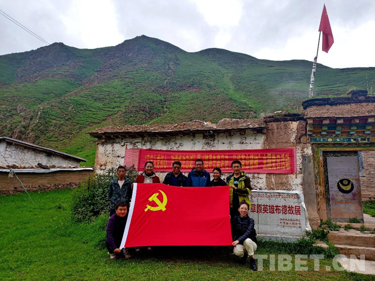 我們?cè)诓嫉鹿示咏邮芰艘惶蒙鷦?dòng)的黨史教育。當(dāng)結(jié)束參觀,走出故居門(mén)時(shí),我們一下子更加領(lǐng)悟到眼前的村莊、山川、河谷為什么如此寧?kù)o、美好而又詳和的真正原因了。在大家提議下,便展開(kāi)黨旗,在“草原英雄布德故居”前合影,這是一次最難忘的黨日活動(dòng)。當(dāng)上車(chē)離開(kāi)時(shí),我們與頓珠扎西同志和其家人依依不舍。英雄布德是我們?nèi)松飞系囊蛔S碑和榜樣,將照耀我們的行程,增強(qiáng)我們的斗志,不忘初心,牢記使命,繼續(xù)前行。(中國(guó)西藏網(wǎng) 文/馮智 本文系中國(guó)藏學(xué)研究中心“那曲市民族交往交流交融史實(shí)調(diào)研組”供稿)