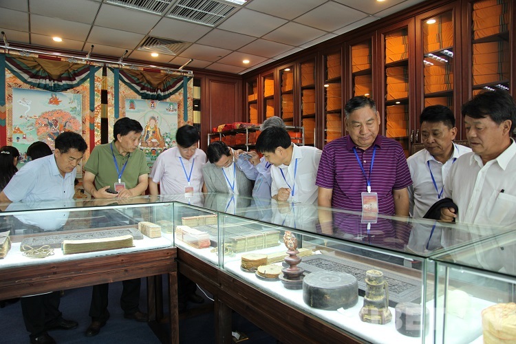 圖為與會的諸位嘉賓在喜馬拉雅文庫考察、觀摩了藏醫(yī)藥古籍文獻