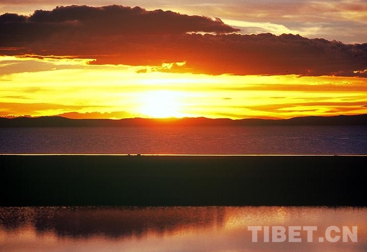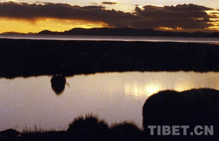 圖為出現在藏北無人區(qū)黃昏時分的美麗奇觀(唐召明1991年攝)