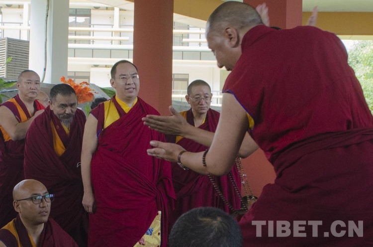 圖為班禪在四川藏語(yǔ)佛學(xué)院觀(guān)看學(xué)員辯經(jīng) 攝影:歐帆