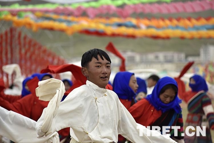 圖為7月25日,班戈縣第七屆納木錯文化旅游民俗風情賽馬藝術節(jié)開幕式上的文藝表演 攝影:王媛媛