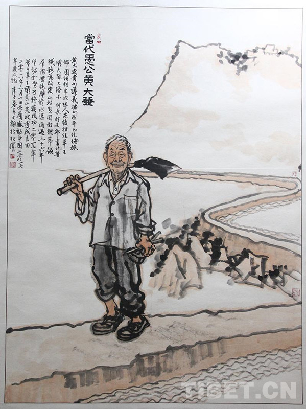 圖為中國畫作品《黃大發(fā)——遵義市播州區(qū)平正仡佬族鄉(xiāng)團結(jié)村名譽村支書》,作者錢文觀