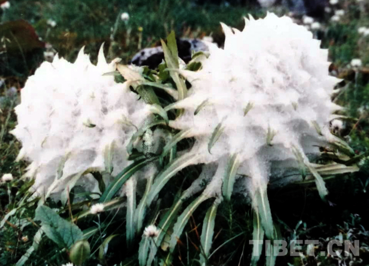 1988年盛夏,我來到雙湖辦事處(現雙湖縣)西亞爾雪山,飽覽了雪蓮的風姿。它長著密密的葉子,全身披掛白色的長長的棉毛,宛若棉球。有趣的是,它棉毛交織,形成了無數的“小溫室”,創(chuàng)造了自身的小氣候。白天,高原上火辣辣的陽光對它好像特別偏愛,它從陽光吸收的熱量超過周圍的土壤和空氣。到了夜間,它又施展抵抗寒冷的特殊本領,溫度下降的很緩慢。自我保護的本領使它能有效地保暖御寒,防止水分蒸發(fā),而滿身長長的棉毛又是一頂保護傘,使自己免遭高原強烈紫外線輻射的傷害。它頂端的條狀花瓣,又常常受到兩面長棉毛的保護……這些形態(tài)特征和特殊的適應性使雪蓮能在高寒貧瘠的高山上生長、繁育、延續(xù)后代。